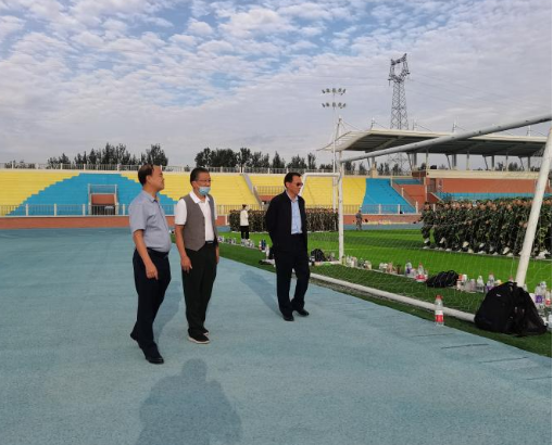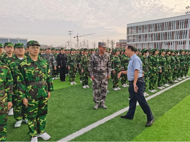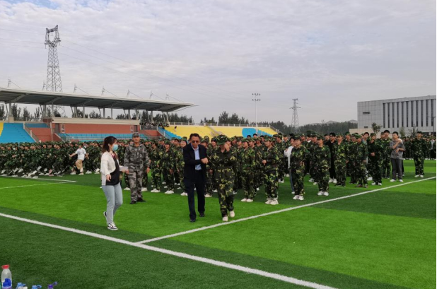 9月21日上午,best365中国官方网站田径场上,best365中国官方网站2022级新生军训如火如荼地进行着。best365中国官方网站朱昌杰院长陪同学校党委朱德顺书记、学生处孙增响处长亲切看望慰问best365官网全体受训学生和教官。