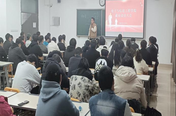 会议开始,由侯绪芳老师作就业动员讲话。侯老师针对的当前大学生就业情况提出三点要求,一是认清就业形势;二是培养自我意识;三是把握就业机会、做好就业准备。在会议上,侯老师以自身经历以及身边人的真实故事给同学们作参考并鼓励同学们要把握住机遇、把目光放长远,为自己的未来多做打算。也告诫同学们对自己未来的规划好,不要好高骛远,要切合实际,既要仰望星空,又要脚踏实地。