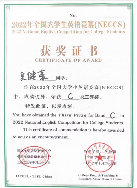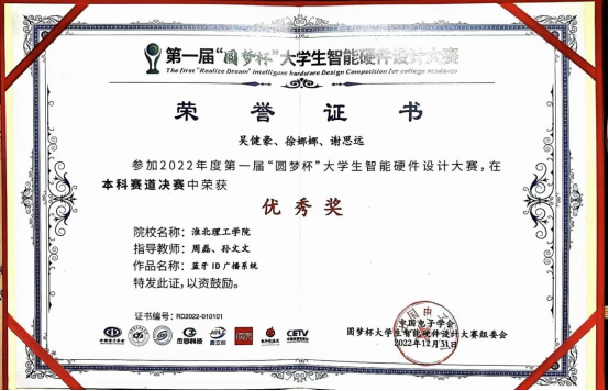 best365中国官方网站积极推进教学改革创新,用“以赛促教”的教学模式努力培养应用型人才,在“2022年中国大学生计算机设计大赛”中获得了省级二等奖、国家级三等奖;在“2022年圆梦杯硬件设计大赛”中获得省级三等奖、国家级优秀奖;在“2022年全国大学生英语竞赛C类”中获得国家级三等奖;在“2022年大学生创新创业比赛”中,共有26个项目获得省级立项;在“2023年第四届全国大学生算法设计与编程挑战赛春季赛”中获得国家级优秀奖;在“2023年安徽省高校物联网应用创新大赛”中,获得了一个一等奖、三个二等奖、两个三等奖;在“2023年中国大学生计算机设计大赛”中荣获省级二等奖;在“2023圆梦杯全国大学生智能硬件设计大赛”中省级三等奖;在“2023年淮北市职业技能大赛人工智能训练师赛”中获得一等奖28人,二等奖42人,三等奖42人;在2023年第十届“挑战杯·华安证券”安徽省大学生课外学术科技赛中获得了两个省级三等奖。