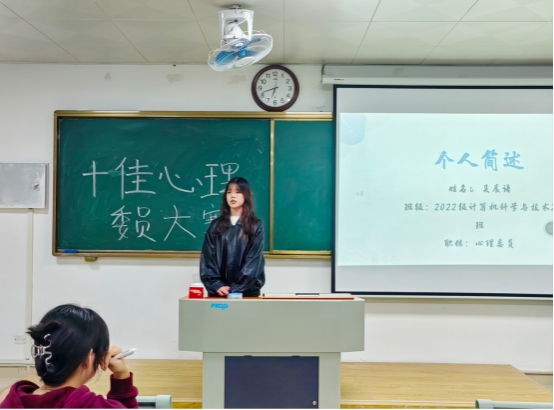 本次比赛参赛人员为各班心理委员,在比赛过程中,每位心理委员结合自己的日常工作,以PPT展示的方式向大家介绍了日常开展的心理宣传、服务同学、自我提升和未来工作计划等内容。评委们针对大家所展示的内容给予了相应的点评以及提问。最终,根据大家的综合能力、心理知识储备等各个方面选拔出优秀的心理委员进入校级评选比赛中。