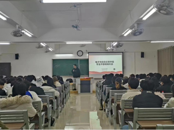 会议伊始,侯绪芳老师强调学生干部要立足工作岗位,培养实干精神,做好班级工作部署,踏实工作,主动思考,珍惜岗位的锻炼机会,不断加强自身能力水平,努力成为综合性人才;侯绪芳老师鼓励同学们踊跃报名参加各类比赛,在比赛中学习专业知识、增加知识储备,提升自己的创造性思维和实际动手能力。