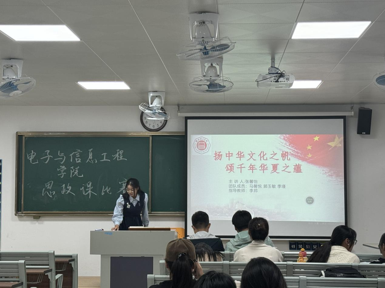 青年言思政,吾辈勇担当。现场比赛氛围浓厚热烈,如火如荼,展现了良好的精神风貌与团队协作精神。来自24级人工智能二班的张馨怡同学以《扬中华文化之帆,颂千年华夏之蕴》为课题,强调了中华优秀传统文化是中华民族的根与魂,从实践的主体、客体上以及时代背景解释了传承中华优秀传统文化的原因,又以“燃己之微光,照国之大道”引出抗战胜利的意义、大国的地位、历史新征程,抗战精神四个方面的内容。