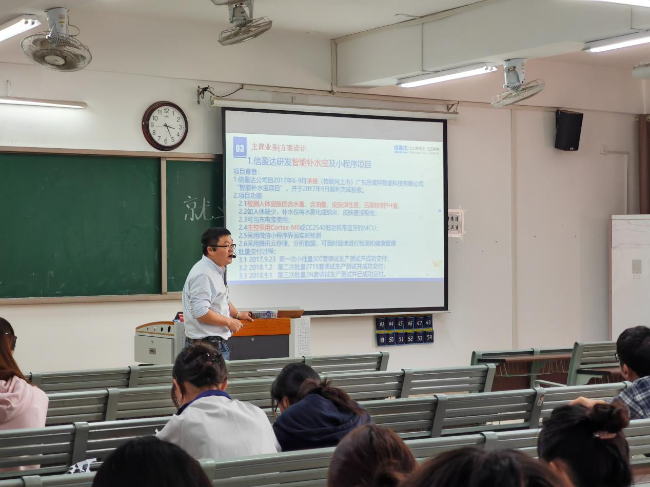 活动现场,南京信盈达技术有限公司为同学们介绍了嵌入式系统设计,公司下设信盈达实训学院、信盈达研发中心、信盈达教学仪器三大业务板块。15年来坚持“技术领先、服务领先”,以雄厚的实力和专业的品质成为国内唯一有实力从产品最底层研发到系统层开发的嵌入式实训、产品解决方案提供商。为中国IT行业提供最具价值的职业教育服务。公司面向华东地区高校,师资力量雄厚,涉及方案设计,教研设备,职业教育等方面,通过校内实训的方式帮助同学们提升专业技能。