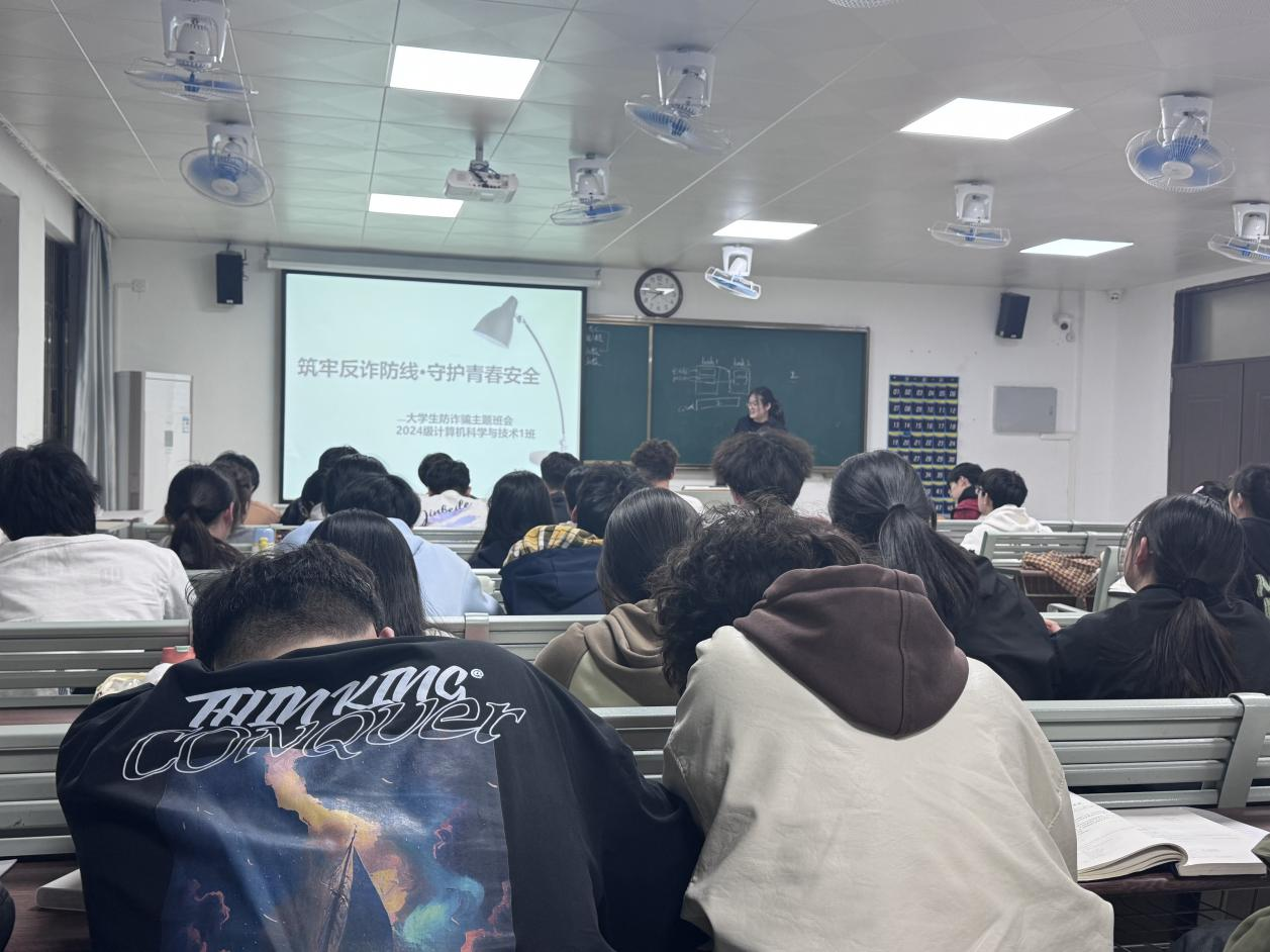 各班纷纷召开防电信诈骗主题班会。在班会上,班主任和辅导员们精心准备,通过PPT展示、案例分析等方式向同学们详细介绍了电信诈骗的常见形式,细致剖析诈骗手段。通过这些真实案例的分析,让同学们能够今后在面对类似情况时提高警惕,避免被骗。