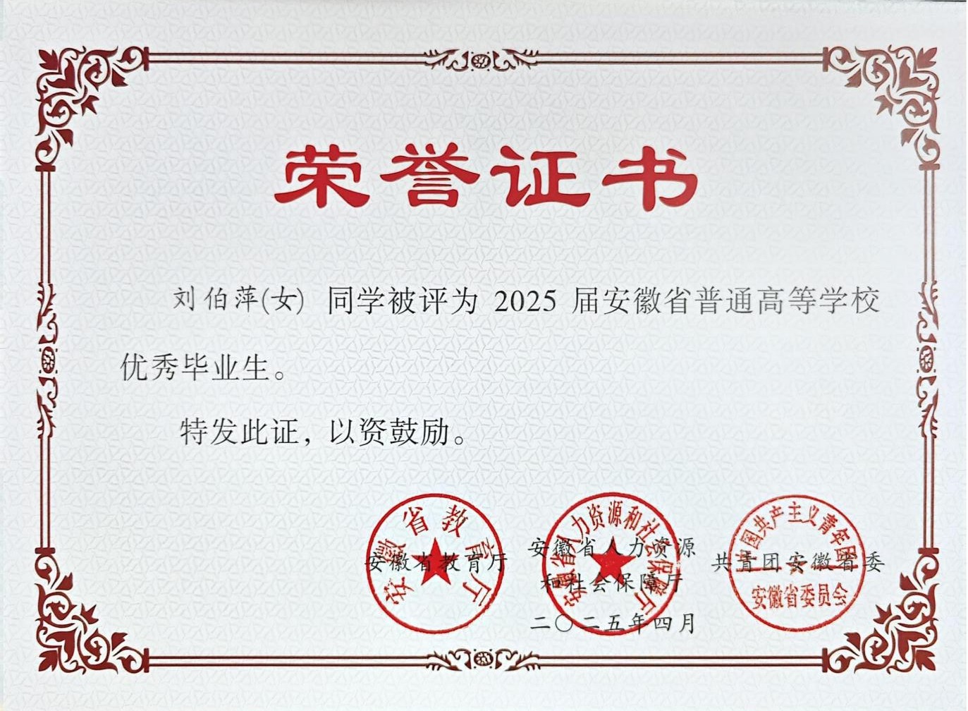 附件:best365中国官方网站best365中国官方网站 2025 届省级优秀毕业生奖状