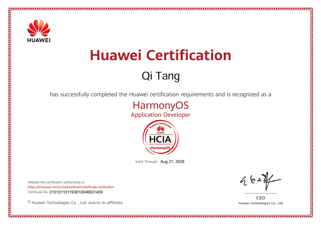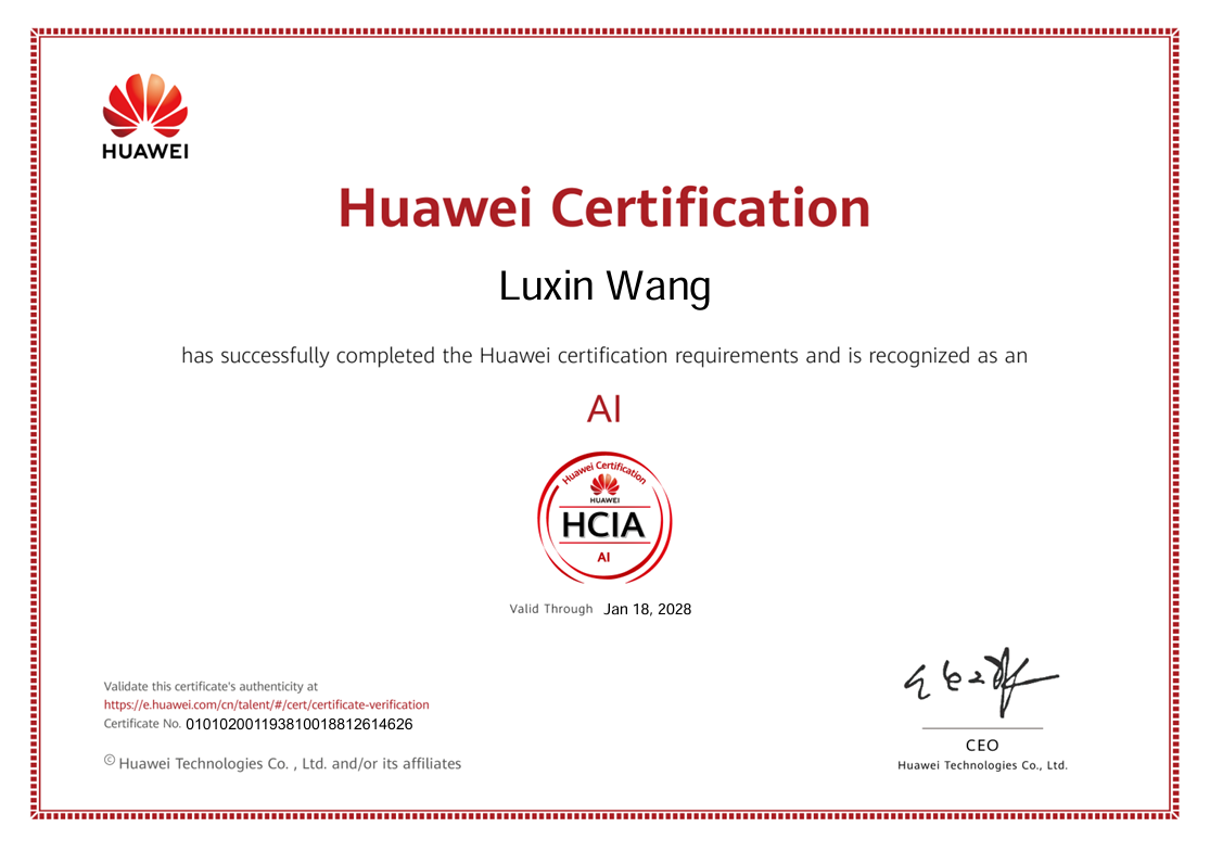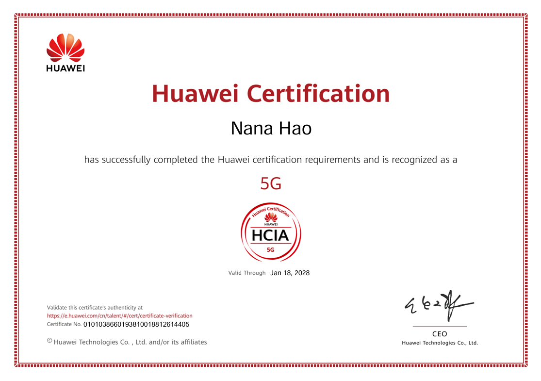教师团队认证成果同样亮眼,共11人次获得华为认证,覆盖多项前沿技术领域。其中10人通过HCIA认证,专业方向分布均衡:4人主攻5G技术,4人专注鸿蒙开发,2人深耕人工智能方向;另有1人成功获得HCIP人工智能高级认证。这些认证成果不仅体现出教师在5G、鸿蒙、人工智能等新一代信息技术领域的专业积累,更反映出教师团队将产业技术融入教学实践的扎实能力,为学校“双师型”教师队伍建设奠定了坚实基础。