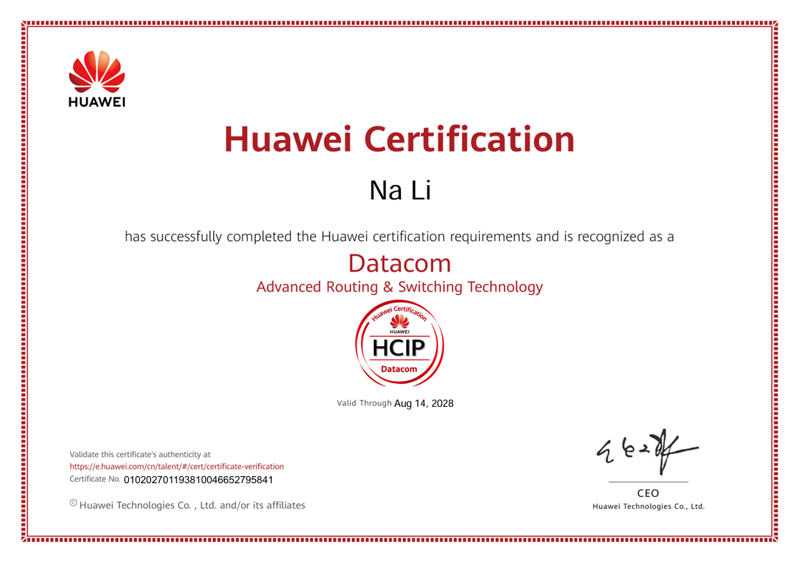 这一成绩是华为产业学院持续推进人才培养模式创新、深化专业内涵建设的集中体现。学院依托华为先进技术资源和认证标准,构建了“以产业需求为导向、以认证赋能为主线”的教学体系,通过师生共同参与认证研习,不仅强化了学生的就业竞争力和创新发展能力,也提升了教师工程实践教学与产业服务能力。