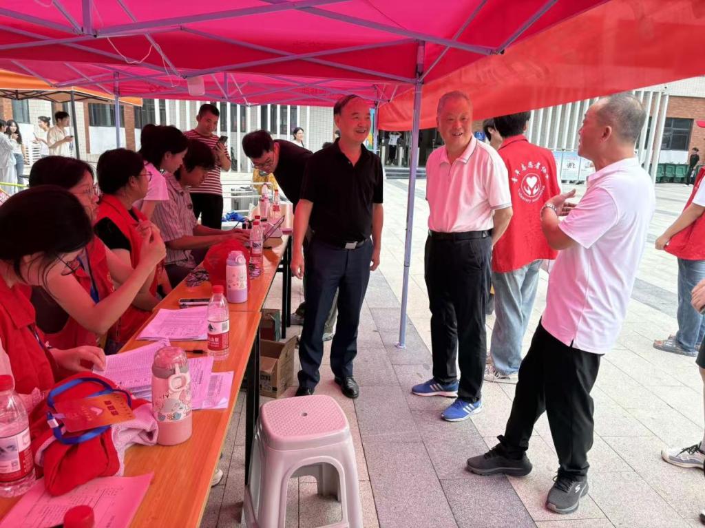迎新工作正式启动不久,副校长汪建利、院长朱昌杰便来到学院迎新现场,查看报到流程各环节。在新生宿舍信息登记处,汪校长与朱院长驻足与工作人员交流,询问新生报到、志愿者工作等情况,并叮嘱大家“要把服务做细做实,让新生感受到学校的温度”。遇到正在办理手续的新生,汪校长和朱院长主动上前问候,鼓励新生尽快适应校园环境,在大学阶段找准目标、积极探索。校院领导的亲临指导,不仅为迎新工作注入了动力,更让师生与家长感受到学校对新生培养的高度重视。