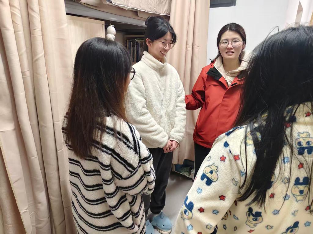 进宿舍环节,辅导员们深入学生宿舍,与学生面对面谈心交流。一方面聚焦学生心理状态,关注因期末备考、就业压力等引发的焦虑情绪,倾听学生诉求,提供情绪疏导技巧,引导学生合理规划作息、调整心态;另一方面,围绕宿舍安全隐患排查、用电安全等内容开展提醒教育,并结合近期高发的电信诈骗案例,现场讲解刷单返利、冒充客服、校园贷等诈骗手段的特点与防范技巧,叮嘱学生提高警惕,守护好个人财产安全。