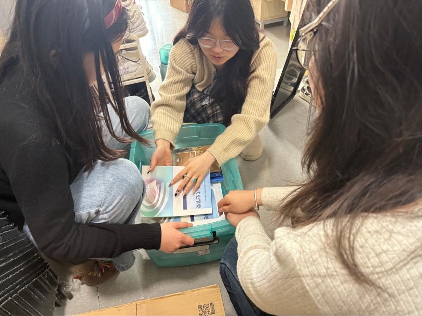 在书籍与杂物整理环节,赵新衍同学演示了“透明收纳箱+标签分类”的技巧,将课本、资料与零散杂物分别装入带盖收纳箱,通过标签标注箱内物品类别,既实现了物品的防尘防潮,又能快速定位查找,让桌面与地面的杂乱堆积问题迎刃而解。