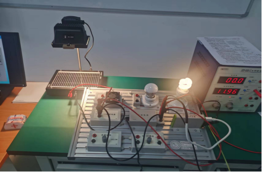 首先,王齐光老师介绍了目前太阳能电池的发展前景、工作原理、光伏效能,讲解了太阳能电池特性及重要参数指标,并现场演示了硅太阳能电池的暗伏安特性测量、开路电压短路电流与光强关系的测量、太阳能电池输出特性等 3个实验。