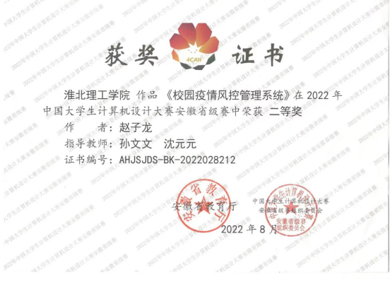 本次赵子龙同学获得的国家级三等奖是我校自成立以来在该奖项上首次荣获国家级优异成绩,实现了我校在该奖项上零的突破,为我校在该项目领域内起到了表率作用,为本次获奖的参赛小组表示祝贺!