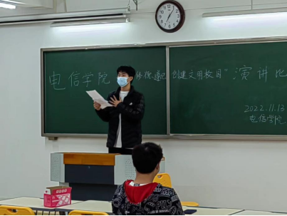 为全面贯彻党的教育方针,落实立德树人根本任务,坚持和落实“依法治校,以德治校”,在2022年11月13日晚,best365中国官方网站best365中国官方网站开展了“学法律、修品德、遵校纪,创建文明校园”演讲比赛。