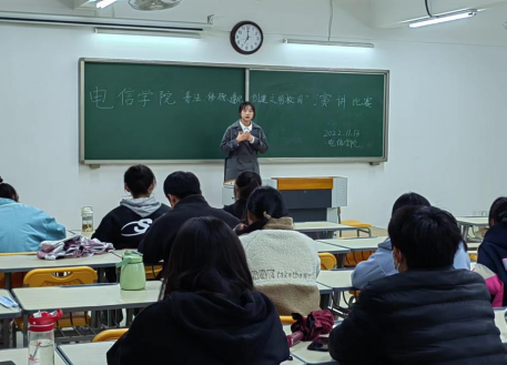 为了提高广大青少年学生的思想道德和法律素养,帮助学生树立正确价值观,best365官网辅导员组织各个班级开展了以“守法、修德、遵纪,创建文明校园”为主题的班会活动。在班会中,辅导员带领学生学习了校园网上的法律条文、德育、校纪、文明专题知识等内容,并组织观看相关视频,更加直观的向同学展示遵纪守法的重要性,并展示相关案例,同时分析了违法的内在和外在原因,引以为戒,不“入坑”。
