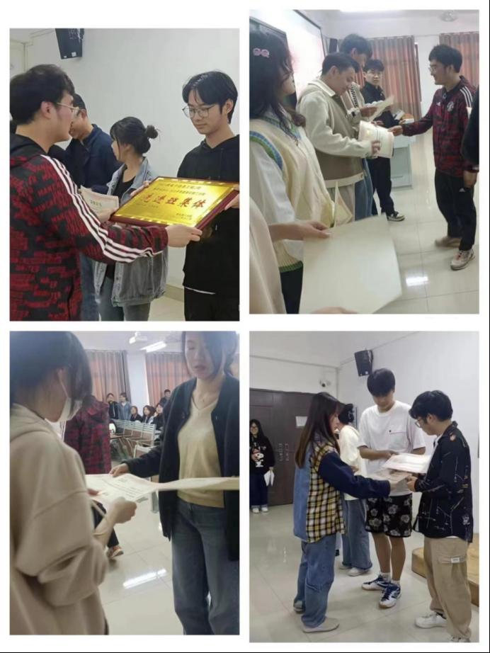 本次表彰大会共为国防军训类奖、优秀班集体、体育赛事类奖(羽毛球比赛、乒乓球比赛)、国家励志奖学金、优秀团员、2021-2022学年优秀学生干部、2021-2022学年三好学生奖、2021-2022学年优秀共青团干部、演讲比赛、创新创业互联网+大赛共十项奖项的获奖者们颁奖。大会由主持人宣读完颁奖词后正式开始。