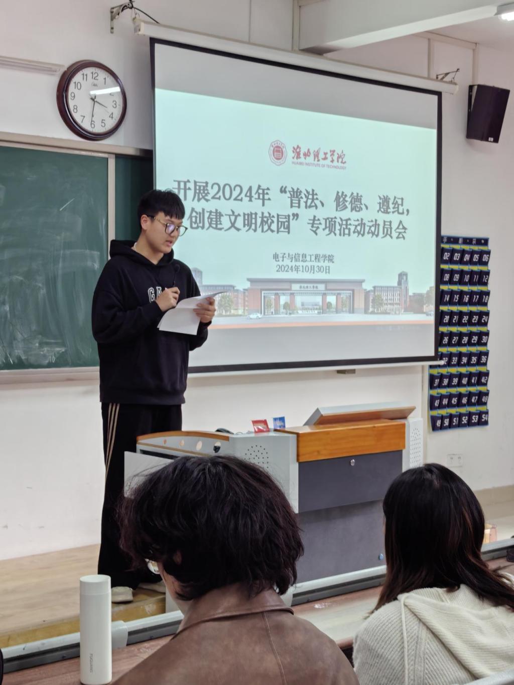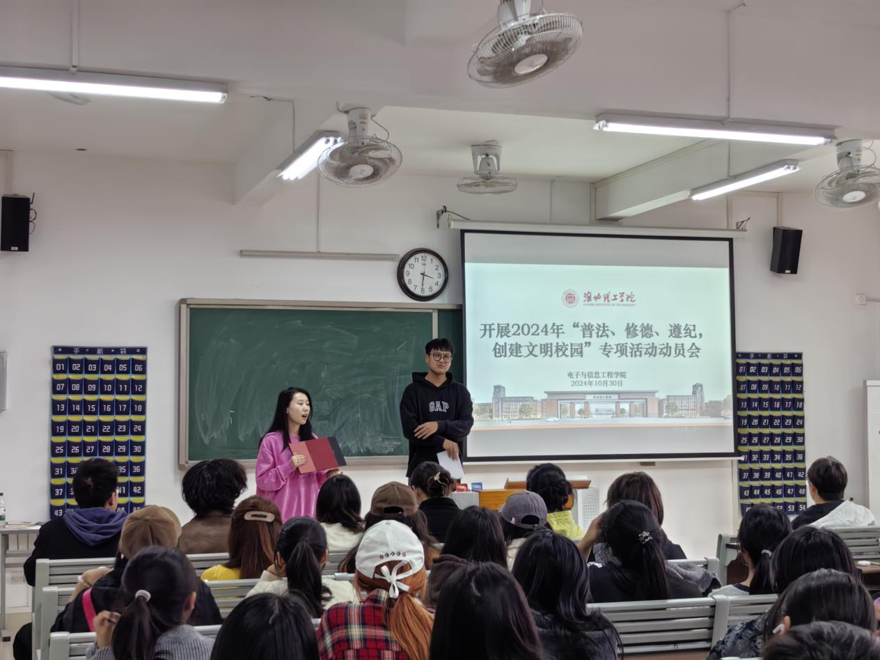 为迎接学校2024年“普法、修德、遵纪,创建文明校园”专项活动,best365中国官方网站于2024年10月30日召开“普法、修德、遵纪、创文明校园”动员大会,学院老师和2024级班委参会。
