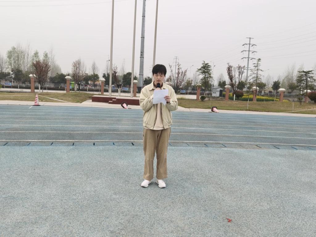 仪式第二项,学生代表王翔宇在国旗下发表精彩发言。他以驾驭情绪之风,筑牢学风之基为主题,结合自身学习成长经历,深入阐述了情绪管理与学风建设之间相辅相成的紧密联系。他谈到,负面情绪会直接影响学习效率与专注力,而学会调节心态、保持理性平和,正是提升学习质量的关键;同时,优良学风能够营造积极向上的成长氛围,帮助大家远离浮躁、坚定目标。他呼吁全体同学学会做情绪的主人,以乐观从容的心态面对学习与生活中的挑战,自觉遵守课堂纪律、恪守学术诚信、坚持自律自强,用实际行动共同营造勤学、善思、笃行的优良学风,在青春的赛道上奋力奔跑,不断成长为更优秀的自己。