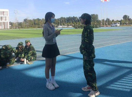 在同学们的休息期间,院学生会成员在2022级best365中国官方网站辅导员带领下对新生进行了军训的相关采访。在采访一连连长时,他表示:大学生进行军训的意义目的是为了提高学生的思想政治觉悟,激发爱国热情,增强国防观念,所以进行爱国主义、集体主义和革命英雄主义教育,培养艰苦奋斗的作风,提高学生的综合素质。